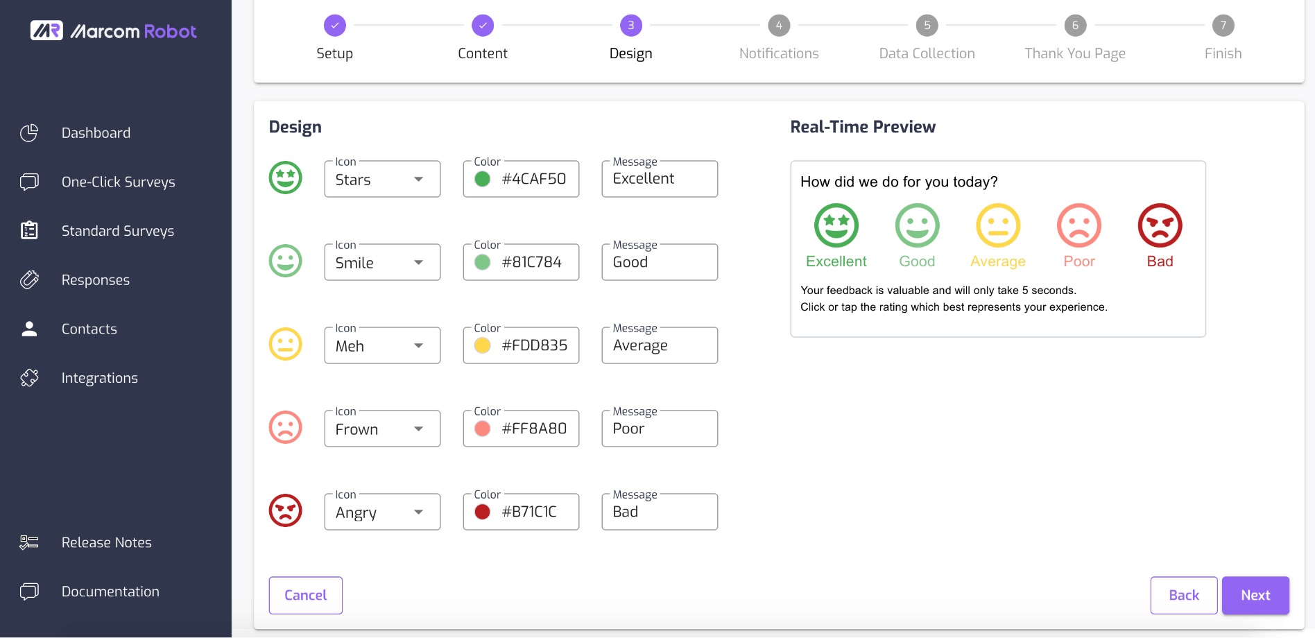 The benefit of using customer feedback tools such as Marcom Robot, is being able to not only quickly create an appealing email signature survey, but also gain instant visibility into the perceived quality of your customer support thanks to the average customer experience score per agent.